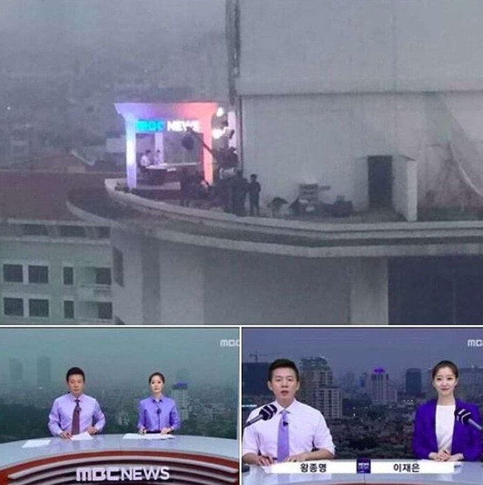 Корейская новостная программа на самом деле снимается на крыше здания вместо использования зеленого экрана