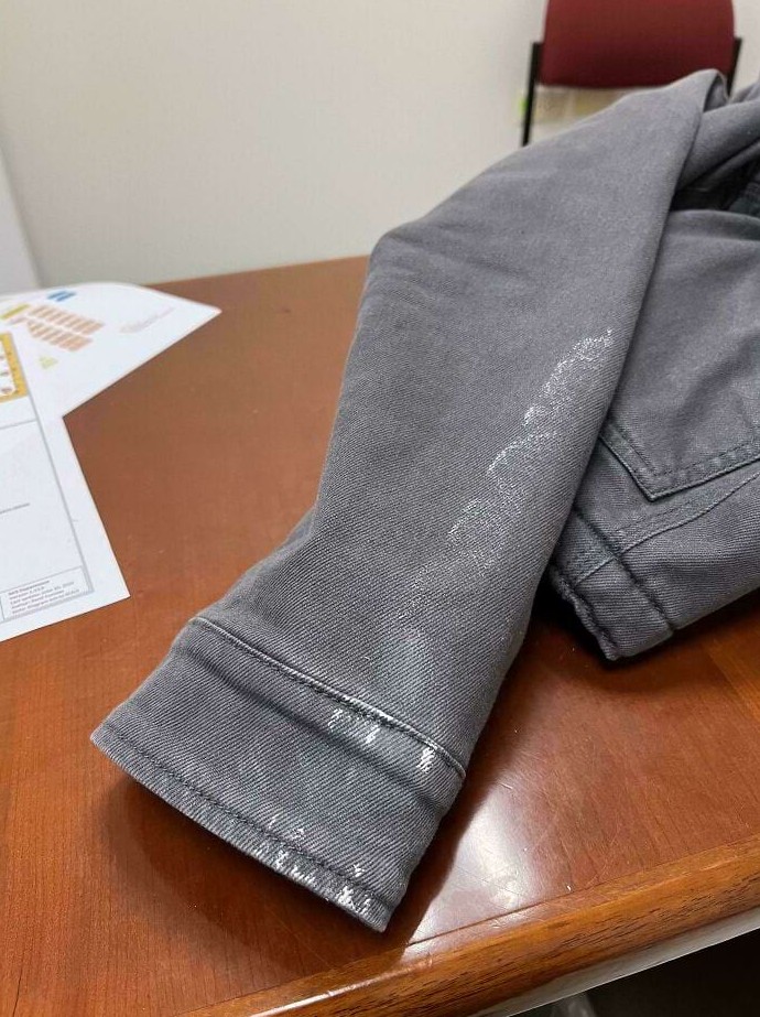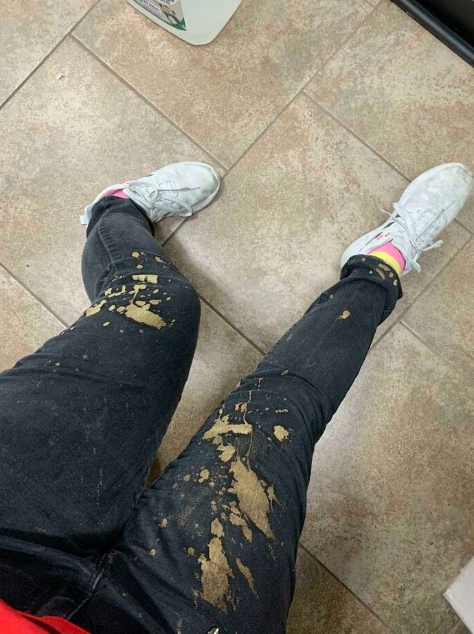 «Вчера вечером я уронила бутылку отбеливателя на пол на работе. Испортила свои хорошие джинсы»