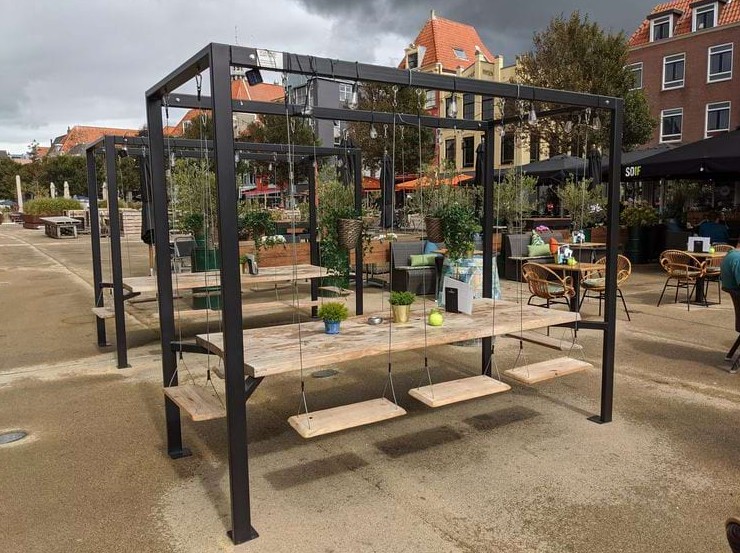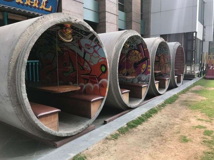 В этом ресторане для мест на открытом воздухе используются бетонные канализационные трубы