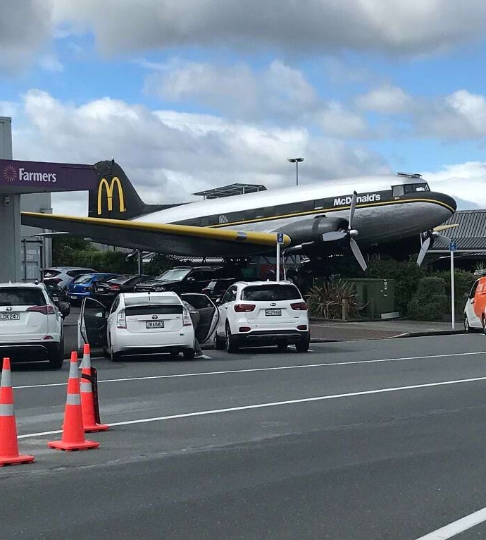 Это списанный самолёт теперь отделение Макдоналдс, Новая Зеландия