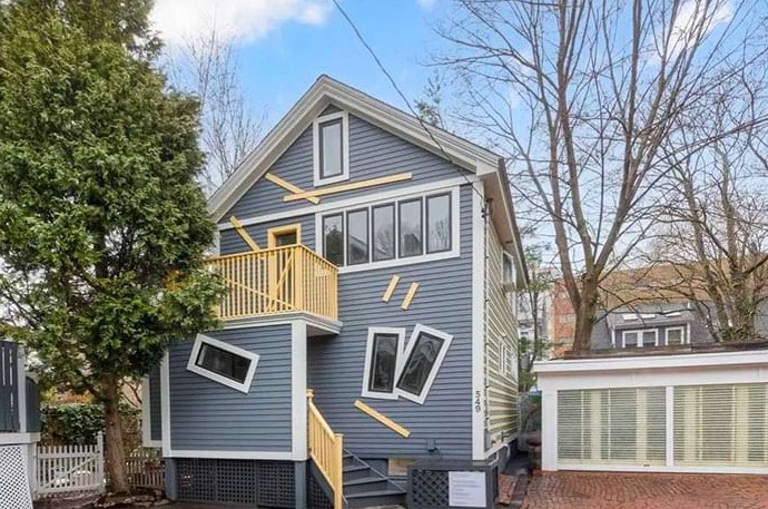 Непонятно, то ли фото сделано под углом, то ли дом ещё и кривой