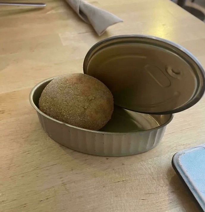 Ах да, подача еды в жестяной банке, предназначенной для рыбы, в веганском ресторане. Вполне логично