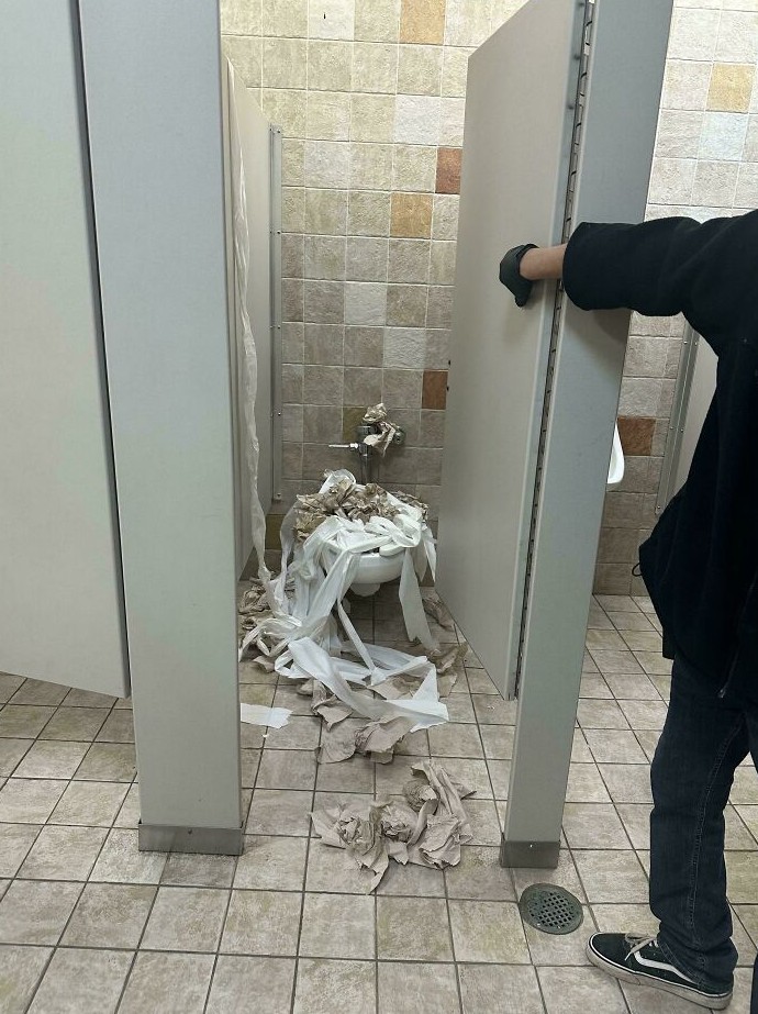 2. «Я работаю в музее, и один из гостей сообщил мне, что сегодня группа школьников ДВАЖДЫ так поступила с мужским туалетом. Как грубо!»
