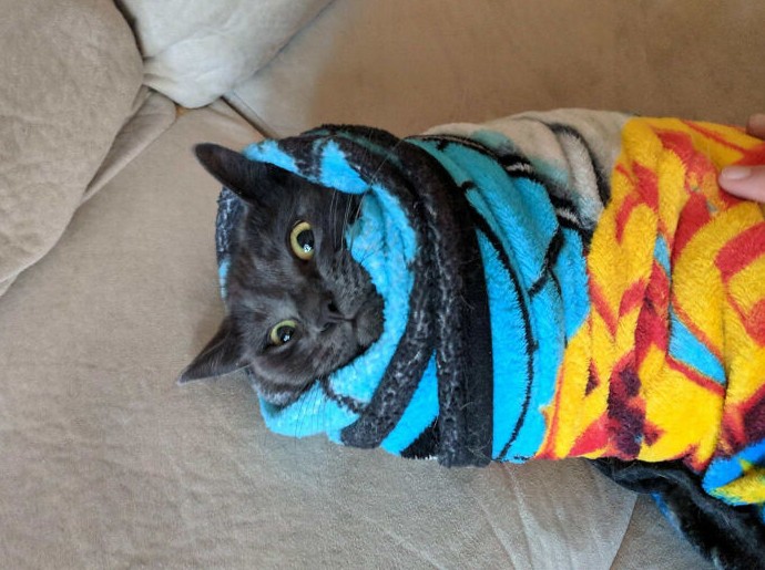14. «Моя беременная жена практикует пеленание. Скитлс не в восторге»