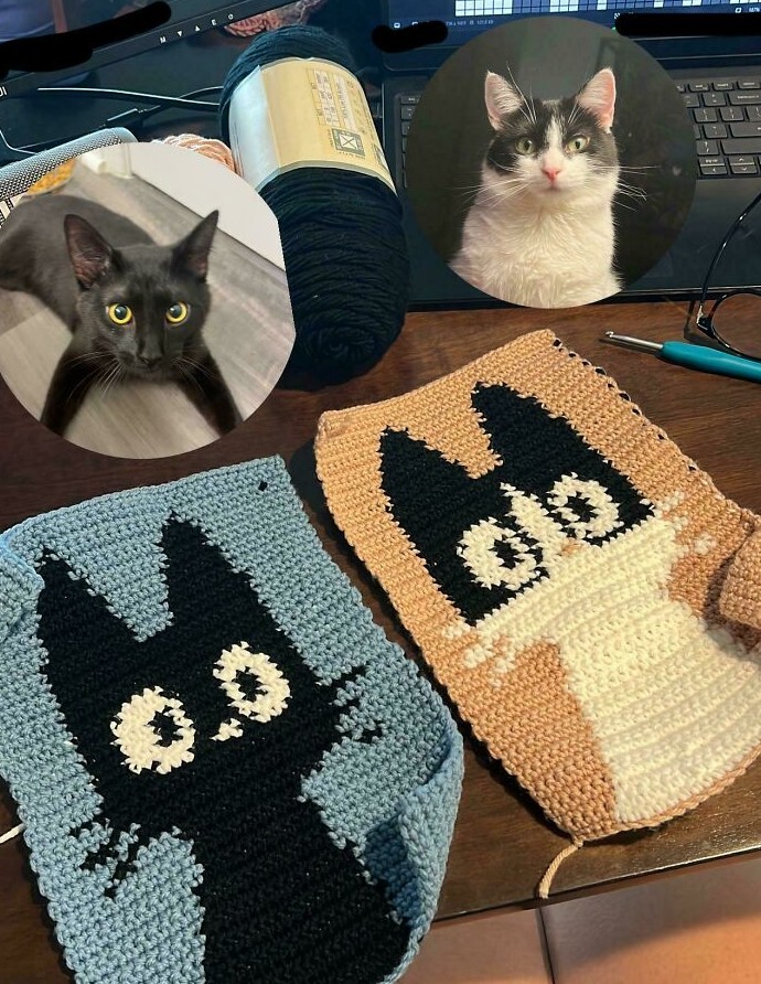 10. «Я связала крючком портреты своих пушистых малышей💗»