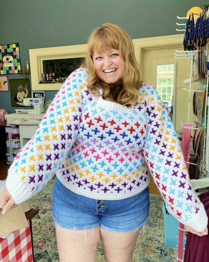 12. «Мой новый свитер с мозаикой, связанный крючком!»