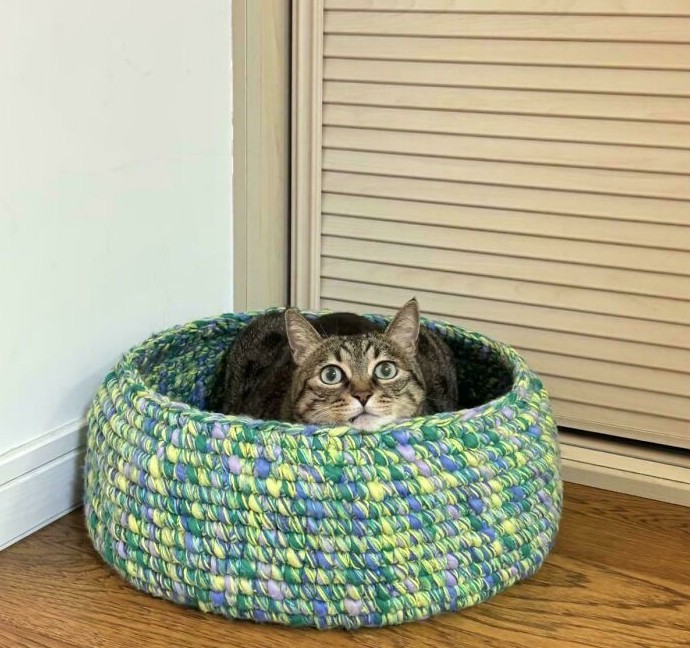 6. «Сделала крючком кошачье гнездо, одобренное боссом 🐱🧶🤣»