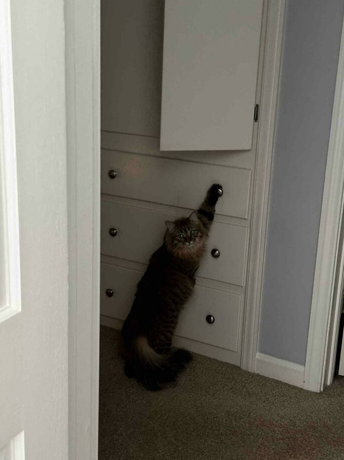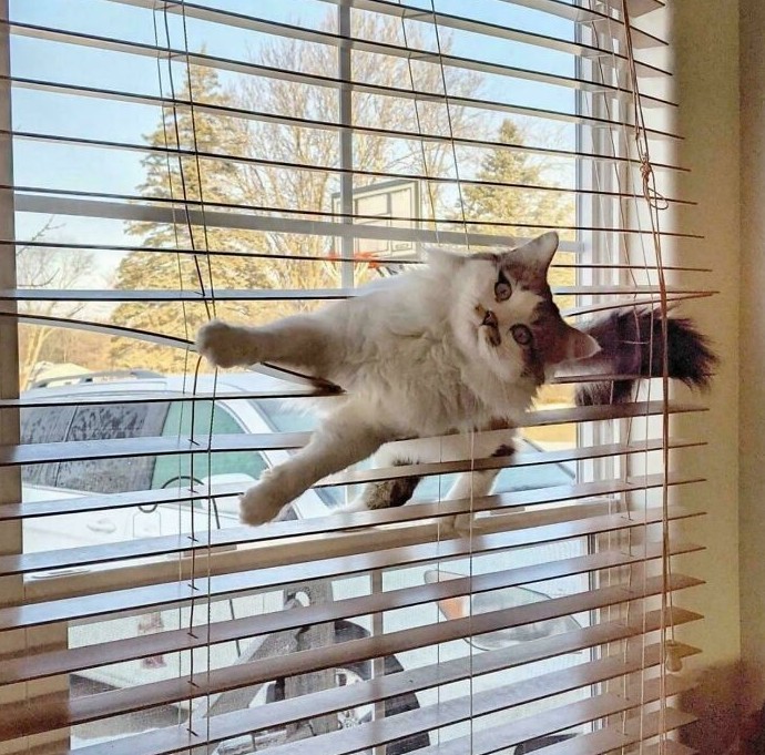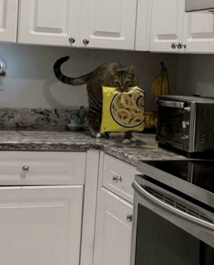Кошки от природы полны игривого любопытства, движимого инстинктами охоты, исследования и наблюдения за окружающим миром. Иногда они делают это весьма странным образом, ввязываясь в самые разные шалости: от застревания в жалюзи до ограбления кладовой, когда хозяева не видят. Их скрытность при этом напоминает преступника, но благодаря своей миловидности они избегают провести свои девять жизней за решёткой.