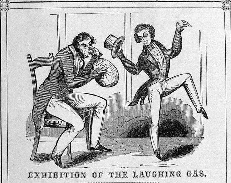 В XIX веке закись азота использовали для развлечений на вечеринках. Пока в 1844 году стоматолог Хорас Уэллс не заметил странный эффект: человек, вдохнувший газ, поранился и даже не понял, что получил травму.