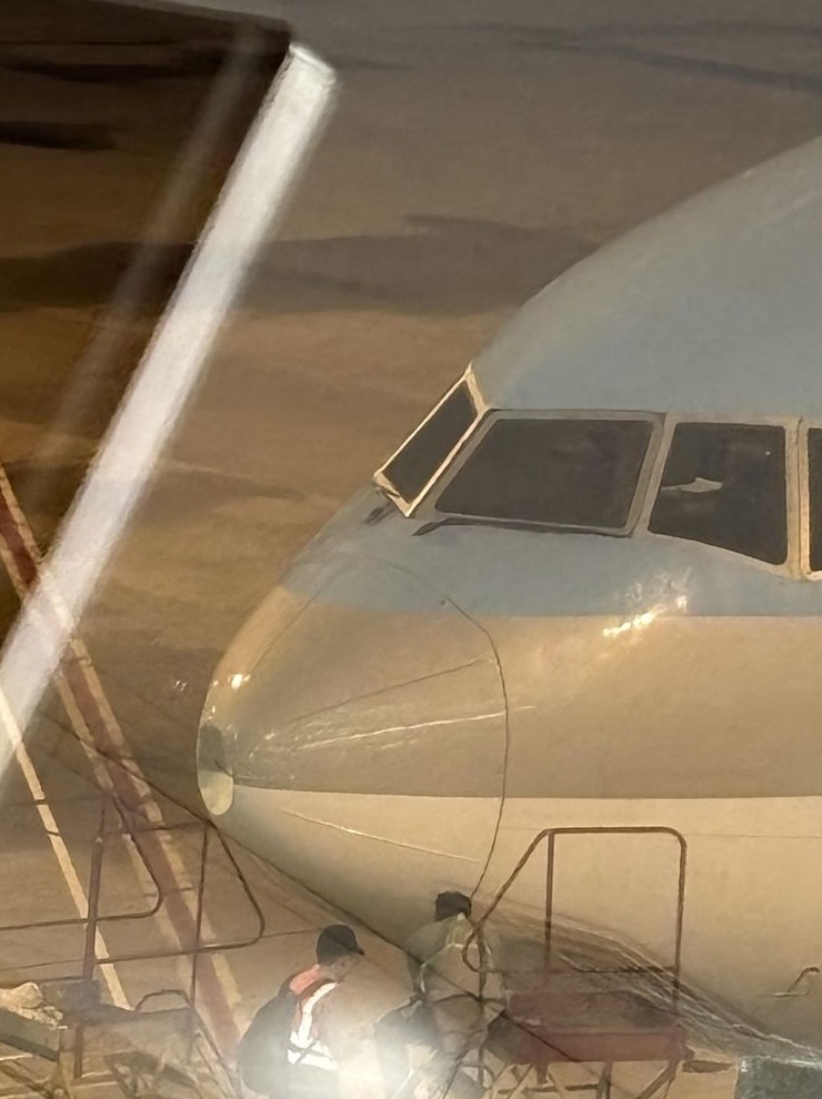 3. Нос самолета получил вмятину из-за столкновения с птицей при посадке