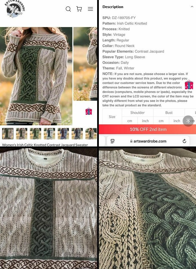 5. «Моя жена заказала очень красивый ирландский свитер на одном сайте. На картинке он выглядел просто потрясающе, хотя и с довольно сложным узором. Она получила толстовку с принтом, плохо прошитыми краями и низкокачественным полиэстером»