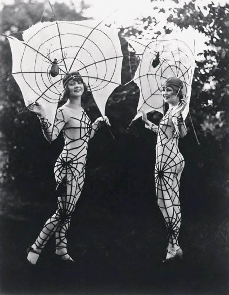 2. Две молодые девушки позируют в костюмах паутины на конкурсе моды в Сент-Луисе в 1925 году