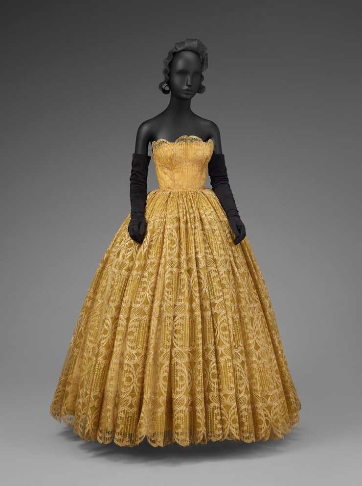 7. Вечернее платье от Энн Фогарти, сшитое из золотого кружева, которое она надела на вручение премии за свои работы, 1953 год