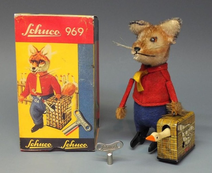 12. Механический лис с гусем — заводная жестяная игрушка, созданная в Германии, в 1950-х годах фирмой Schuco, одним из крупнейших производителей фигурок с пружинным механизмом