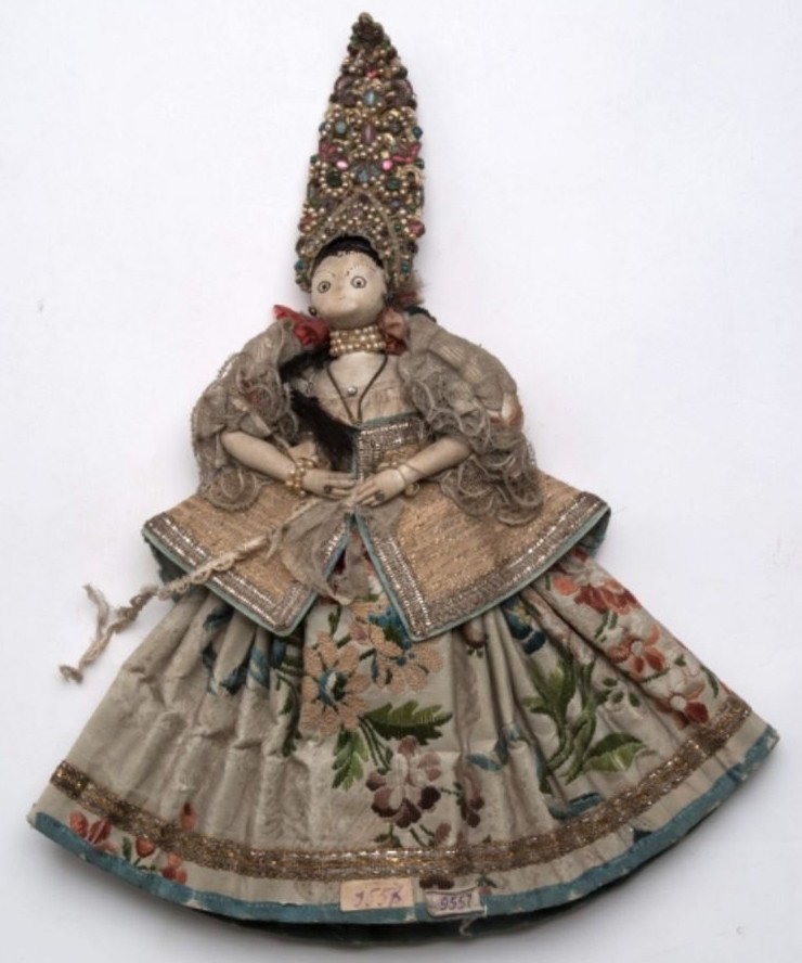 По преданию, она принадлежала в детстве дочери Петра I — будущей императрице Елизавете, но исследователи относят её к более позднему времени, когда дорогие ткани и украшения стали доступны зажиточным горожанкам. Кукла полностью одета в праздничный костромской наряд: кокошник, сарафан, душегрея, кружева, миниатюрные башмачки — всё воспроизведено с поразительной точностью.