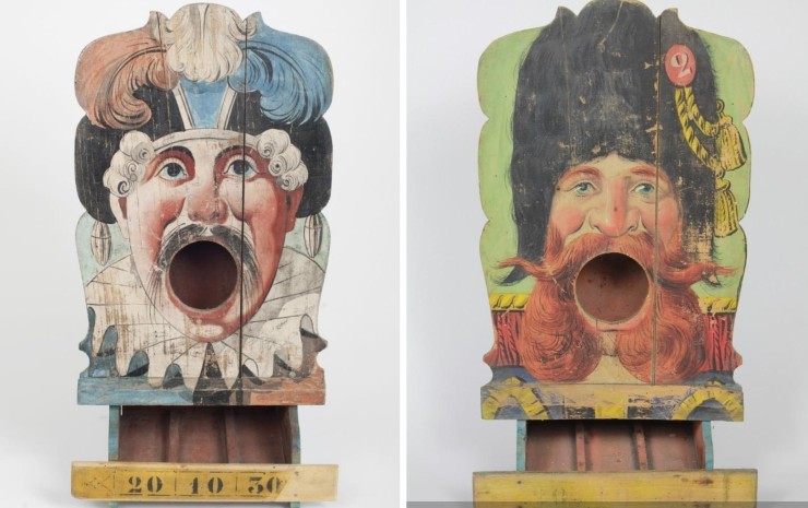 4. На ярмарках конца XIX - начала XX века можно было встретить такие забавные, а порой и жутковатые игры: раскрашенные щиты с лицами, в которых зияли большие рты или прорези
