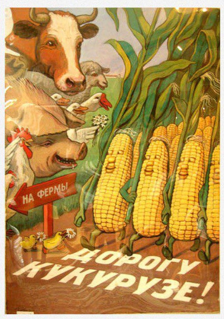 12. Советский плакат с надписью «Дорогу кукурузе!», эпоха Хрущёва, 1960-е годы