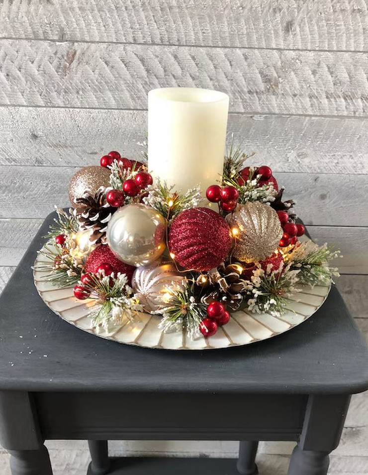 Композиции из свечей разной высоты выглядят особенно выразительно. Дополните их корицей, дольками апельсина, еловыми ветками или шишками — и декор станет не только красивым, но и ароматным.