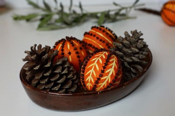 Вы можете использовать ароматические свечи, саше, диффузоры или натуральные композиции из апельсинов с гвоздикой и веточек ели. Такой декор выглядит эстетично и наполняет дом ощущением уюта.