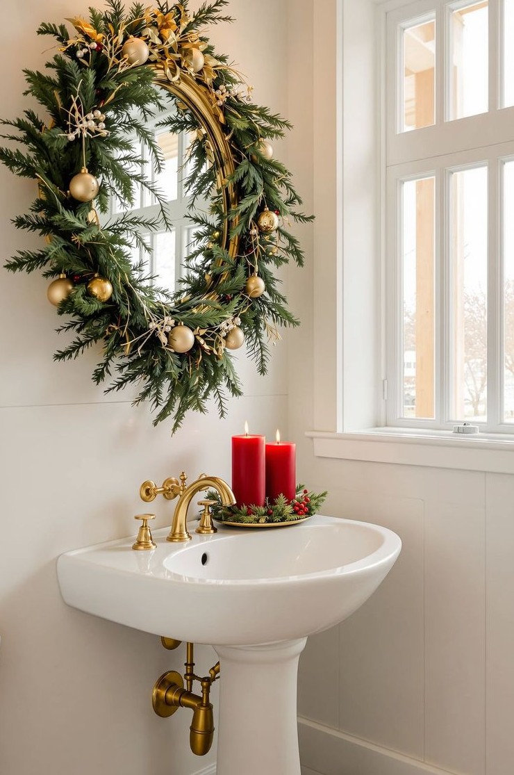 Новогодние акценты не обязаны быть только в гостиной. Небольшие фигурки, гирлянды или свечи в ванной, прихожей или на рабочем столе делают праздник «вездесущим».