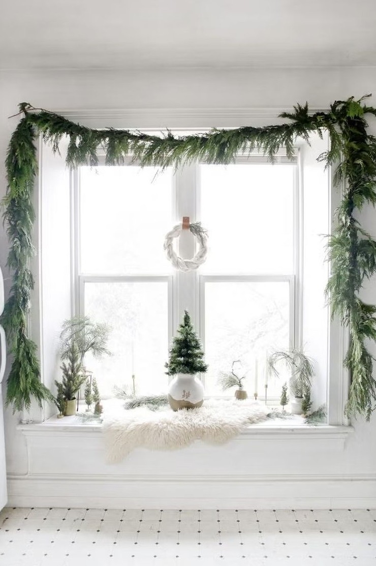 Подоконник — одно из самых недооценённых мест в квартире. Зимой он может превратиться в настоящую мини-сцену: свечи разной высоты, еловые ветки, шишки, фигурки, фонарики или стеклянные домики.