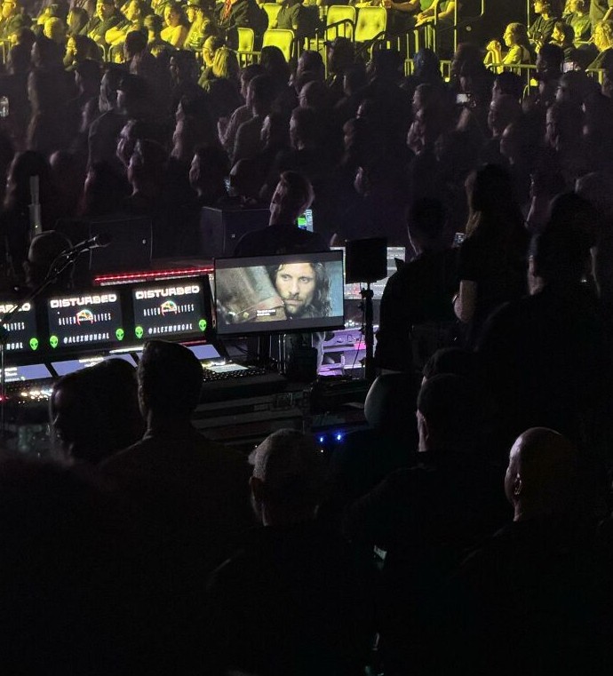 16. Технический персонал смотрит «Властелина колец» во время шумного концерта