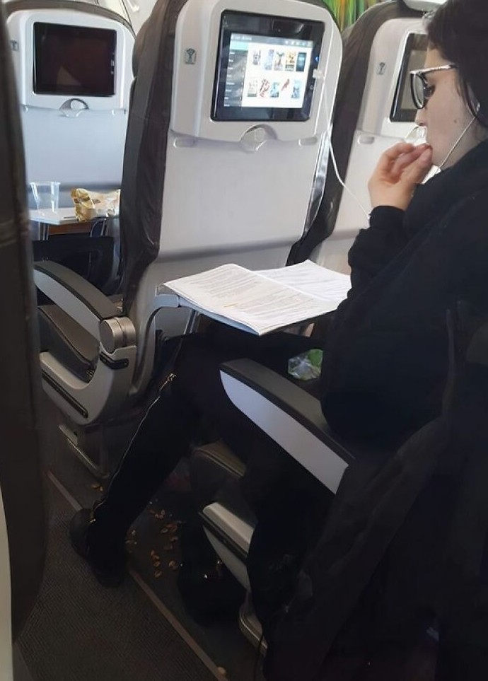 4. Эта девушка бросает скорлупу фисташек на пол самолета
