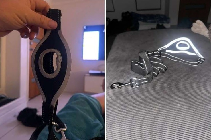 13. Вопрос: «Поводок для собак с отверстием и со светоотражающими элементами. Этот намордник лежал среди собачьих поводков, но он не повторяет контуры морды, это просто плоский неопрен с отверстием»