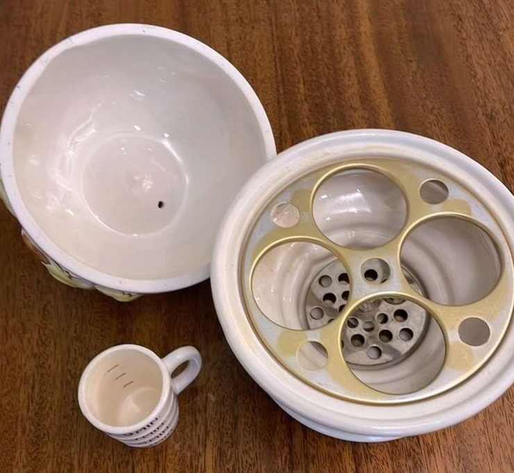 Ответ: «Это мерный стакан, идущий в комплекте с электрической яйцеваркой»
