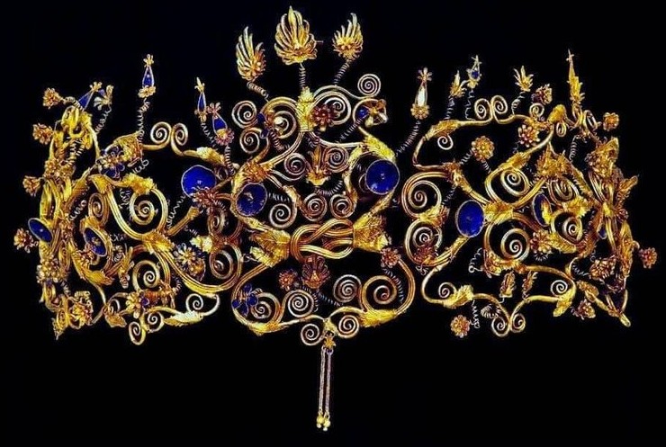 13. Золотая диадема скифской принцессы Меды, найденная в гробнице Филиппа II Македонского. Эгей, Македония, Греция. IV век до н.э.