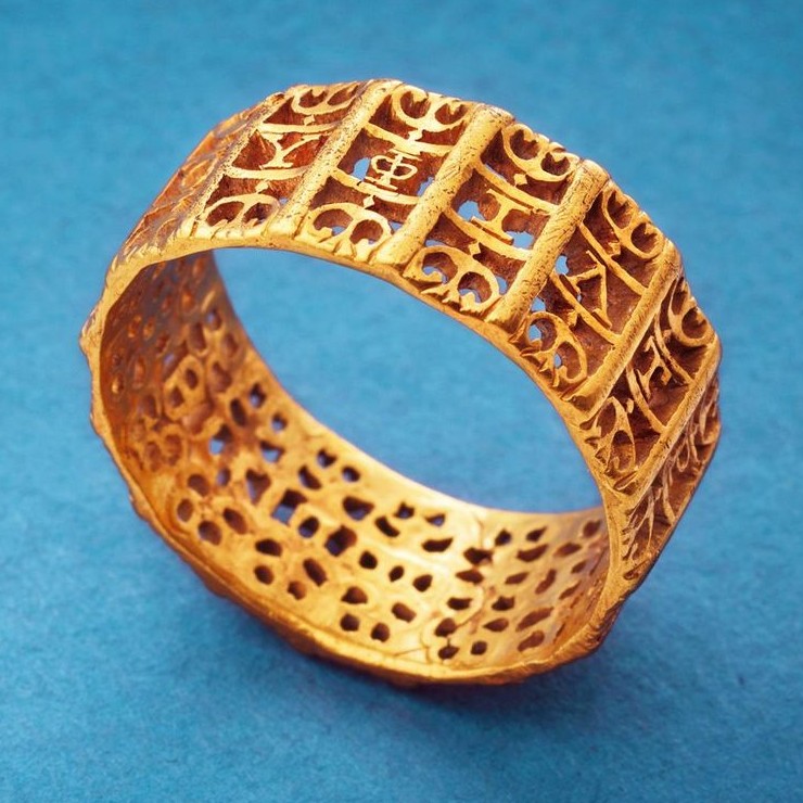 14. Римское золотое кольцо со стены Адриана с ажурной греческой надписью «Любовный знак Полемия»