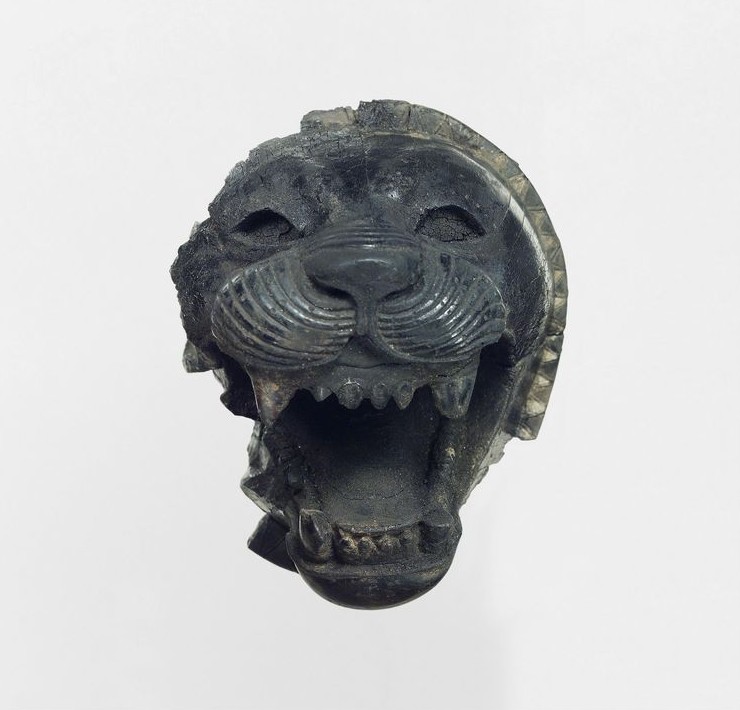 2. Резная деталь мебели с изображением головы рычащего льва, ассирийская, ок. IX–VIII вв. до н.э.
