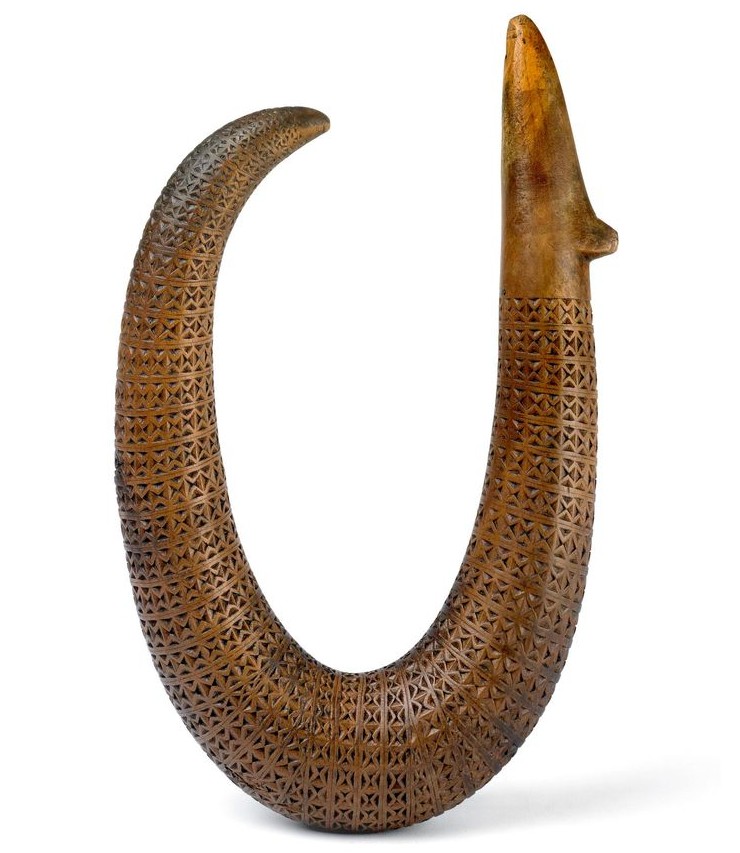 3. Деревянный крюк для ловли акул с гравированным узором. Острова Кука, XVIII-XIX века