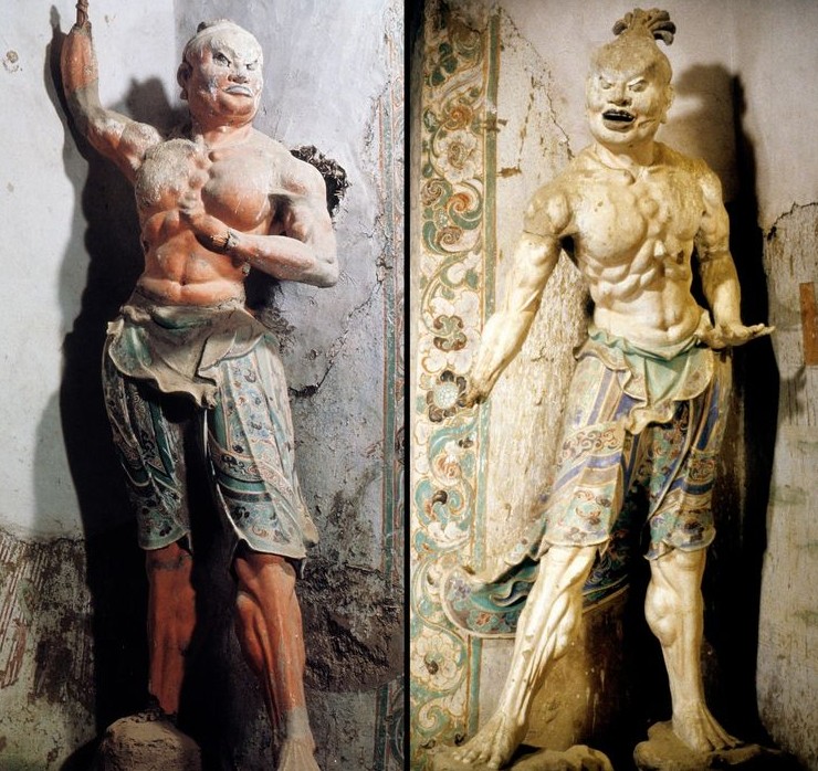 4. Скульптуры стражей внутри пещеры Могао. Китай, династия Тан, 618-907 гг. н.э.