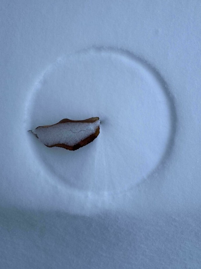 8. Лист рисует идеальный круг на снегу, вращаясь под действием ветра