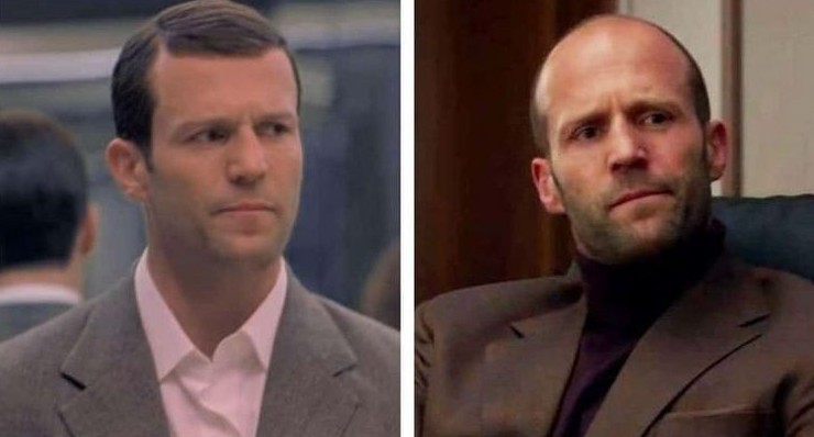 В этом фильме Стэйтем появляется с короткой причёской, которая делает его неожиданно… инфантильным. Вместо привычной брутальности — ощущение, будто взрослого мужчину нарядили не по возрасту. И это при том, что сам фильм и без того странный.