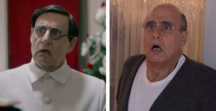 Идеально уложенный парик делает образ неестественным до такой степени, что внимание постоянно переключается с персонажа на причёску. Особенно странно это выглядит, если помнить Хэндлера по ролям, где его лысина была частью обаяния.