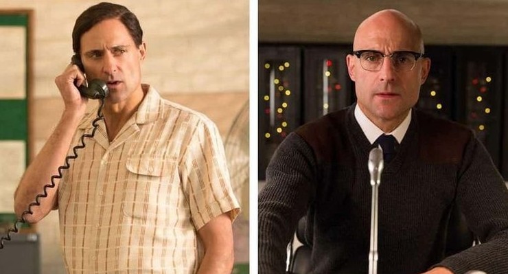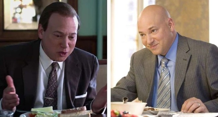 Парик здесь хотя бы работает на образ — Маленков в исполнении Тэмбора выглядит нервным и нелепым. Но всё равно странно видеть культового лысого актёра с аккуратной тёмной шевелюрой, особенно на фоне гордо лысого Хрущёва.