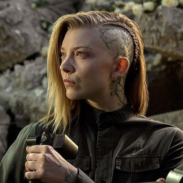 Для участия в «Голодных играх: Сойка-пересмешница» актриса сбрила половину головы, сыграв Крессиду — режиссера с подчеркнуто бунтарским обликом.