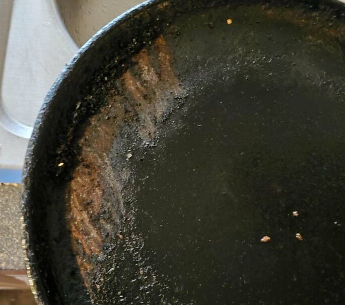 7. «Жена подумала, что моя любимая чугунная сковорода слишком сильно загрязнилась, и попыталась почистить её острым металлическим скребком»