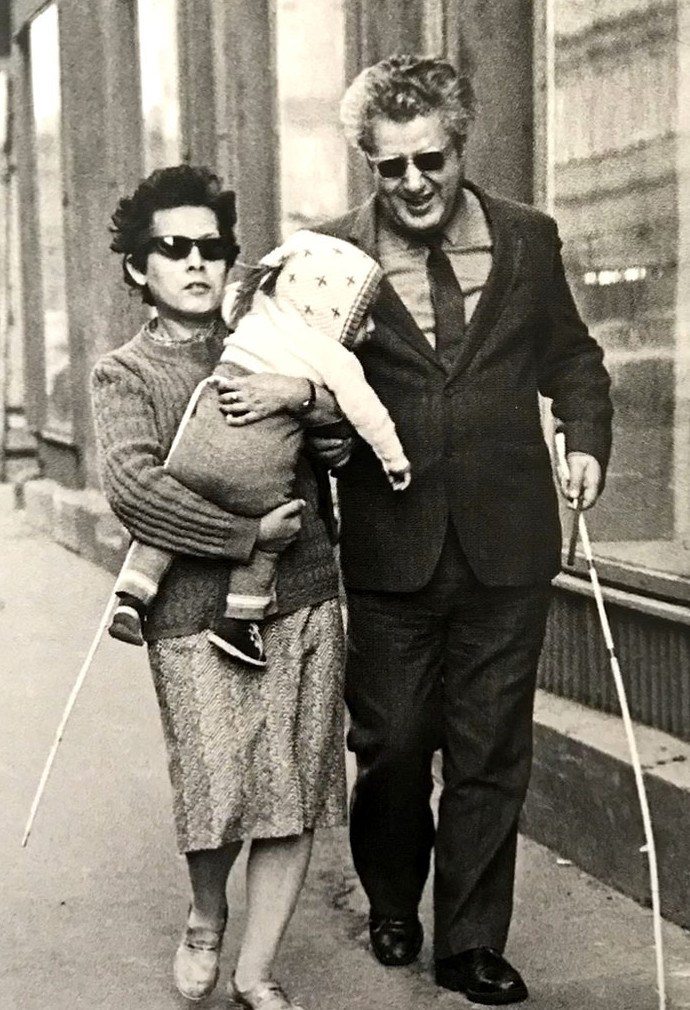 11. Слепая пара, идущая с ребенком по улицам Будапешта, 1984 год