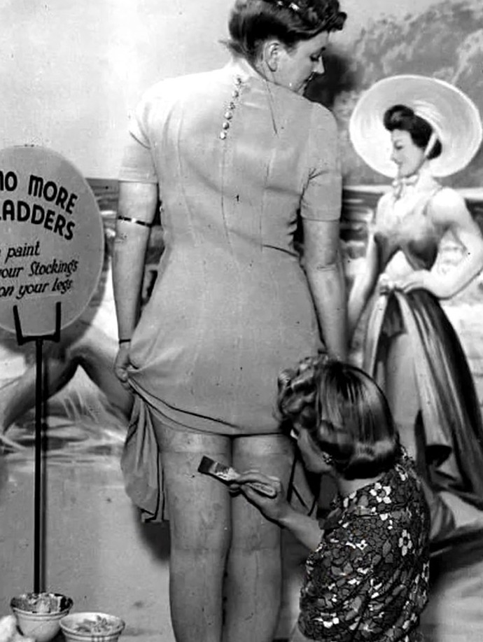 Во время Второй мировой войны нейлон был нормирован, из-за чего у женщин не было чулок, а поскольку ходить с голыми ногами считалось моветоном, женщины начали рисовать чулки.