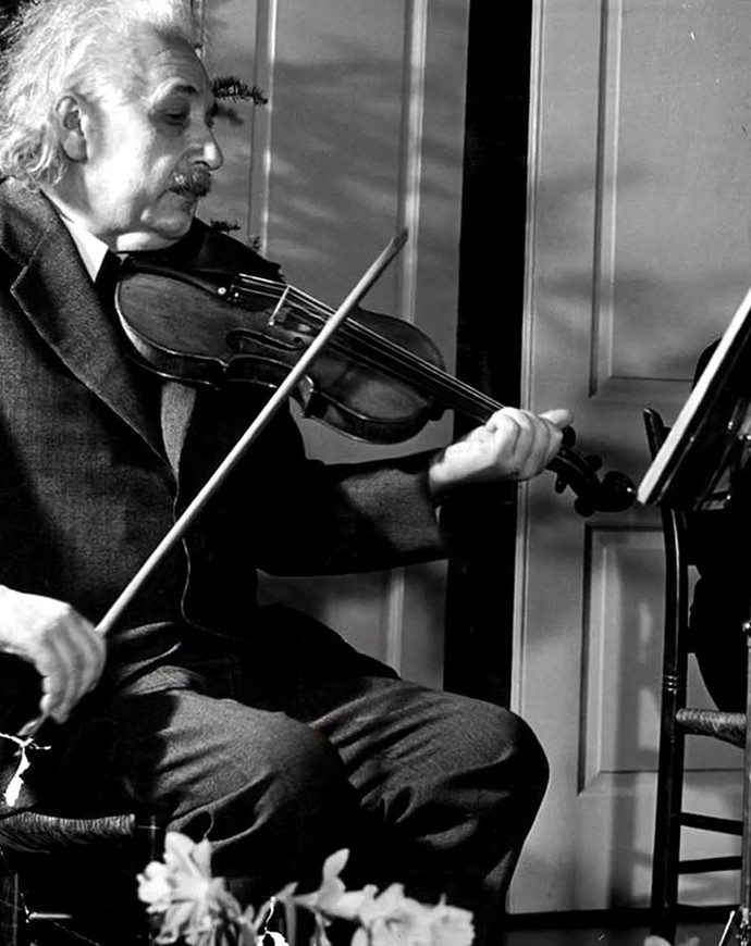3. Альберт Эйнштейн играет на своей любимой скрипке, 1941 год