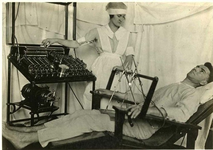 Но в первые годы всё выглядело гораздо жестче: пациента просто укладывали на кровать, фиксировали и пропускали ток через мозг.