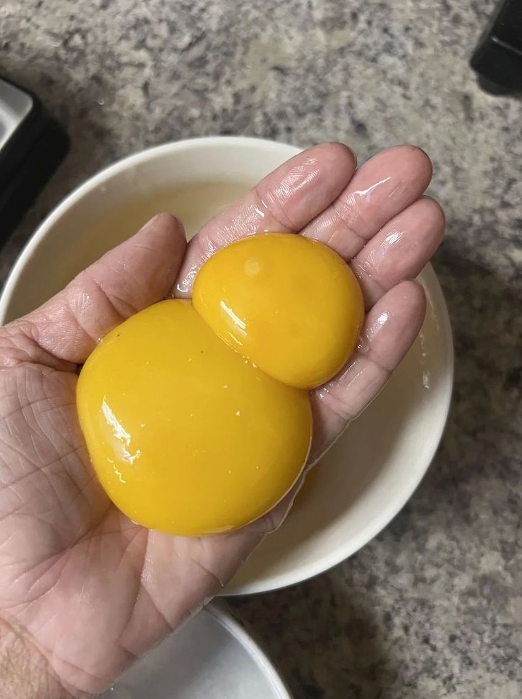 «Я старалась выбрать куриное яйцо среднего размера для сравнения. Мои разные куры несут яйца разного размера», — написал автор фото 🍳
