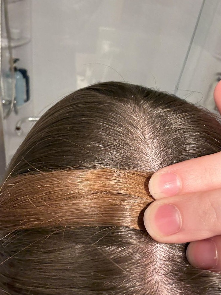 2. «Разница в цвете корней и кончиков моих неокрашенных волос»