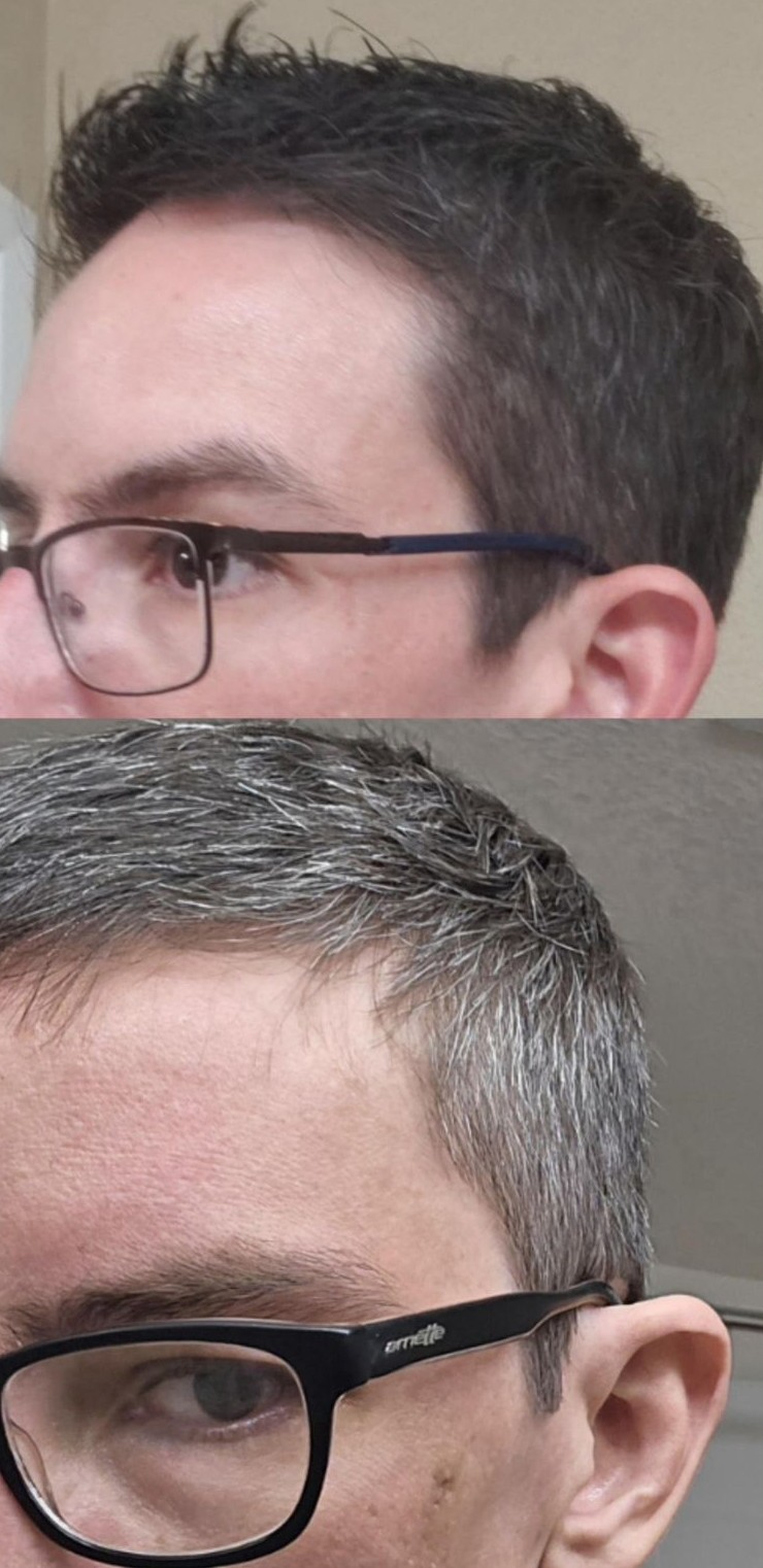 3. «Насколько сильно поседели мои волосы за 3 года (с 28 лет до 31 года)»