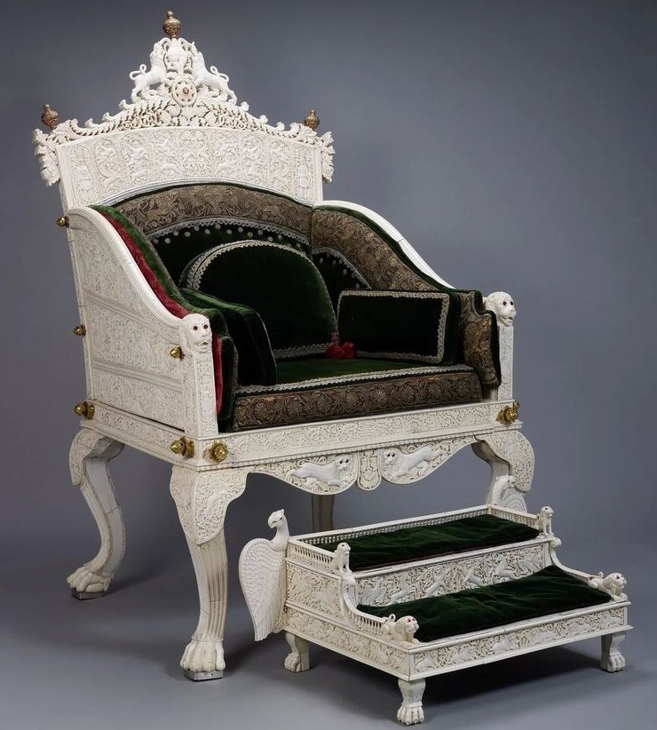 10. Трон и подставка для ног из слоновой кости, украшенные резьбой в виде слонов