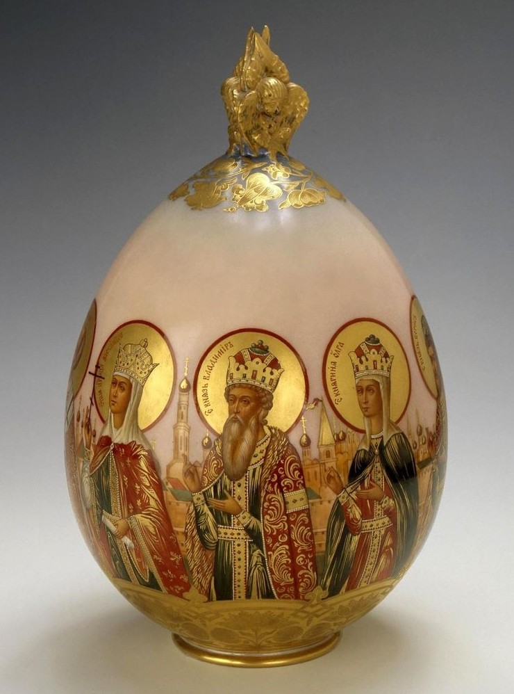 13. «Пасхальное яйцо с изображениями святых» Императорского фарфорового и стекольного завода Российской империи, 1916 год