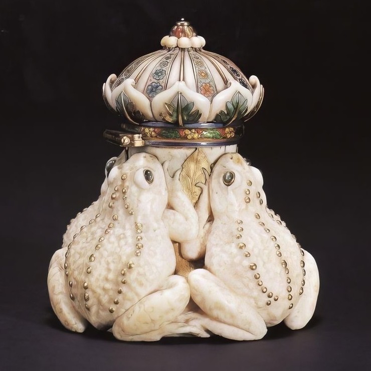 16. Чернильница с изображением лягушек, изготовленная из резной слоновой кости и эмали, разработанная компанией Tiffany & Co., США, около 1910 года